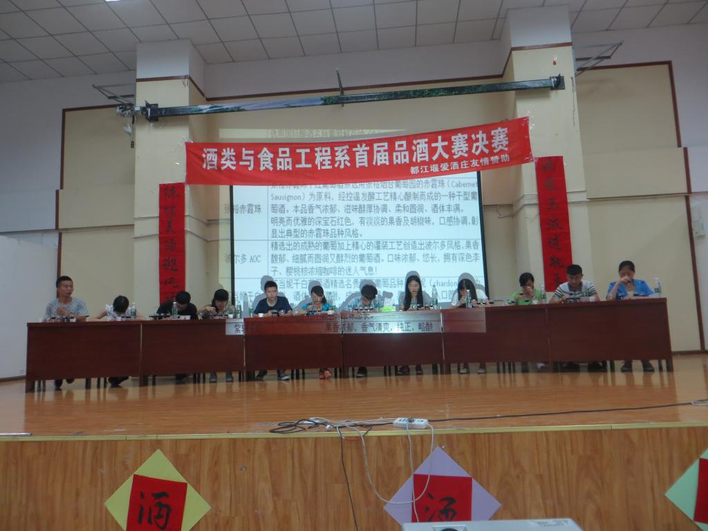 2013年6月3日由酒食系学习部主办的“酒类与食品工程系首届品酒大赛”决赛在J2B演讲厅隆重举行。