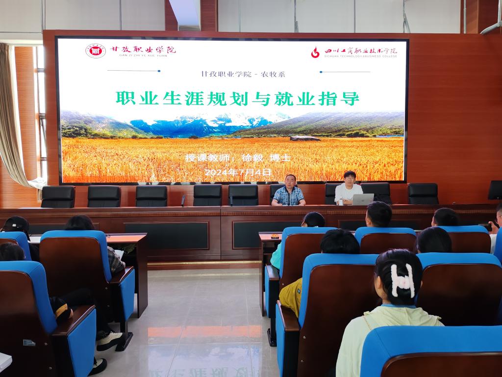 7月4日,永利yl23411集团食品科学与工程(职教)专业教研室主任徐毅博士受邀赴甘孜职业公司开展“职业生涯规划与就业指导”专题讲座。农牧系农产品加工与质量检测、畜牧兽医、饲草生产技术专业180余名员工参加讲座。