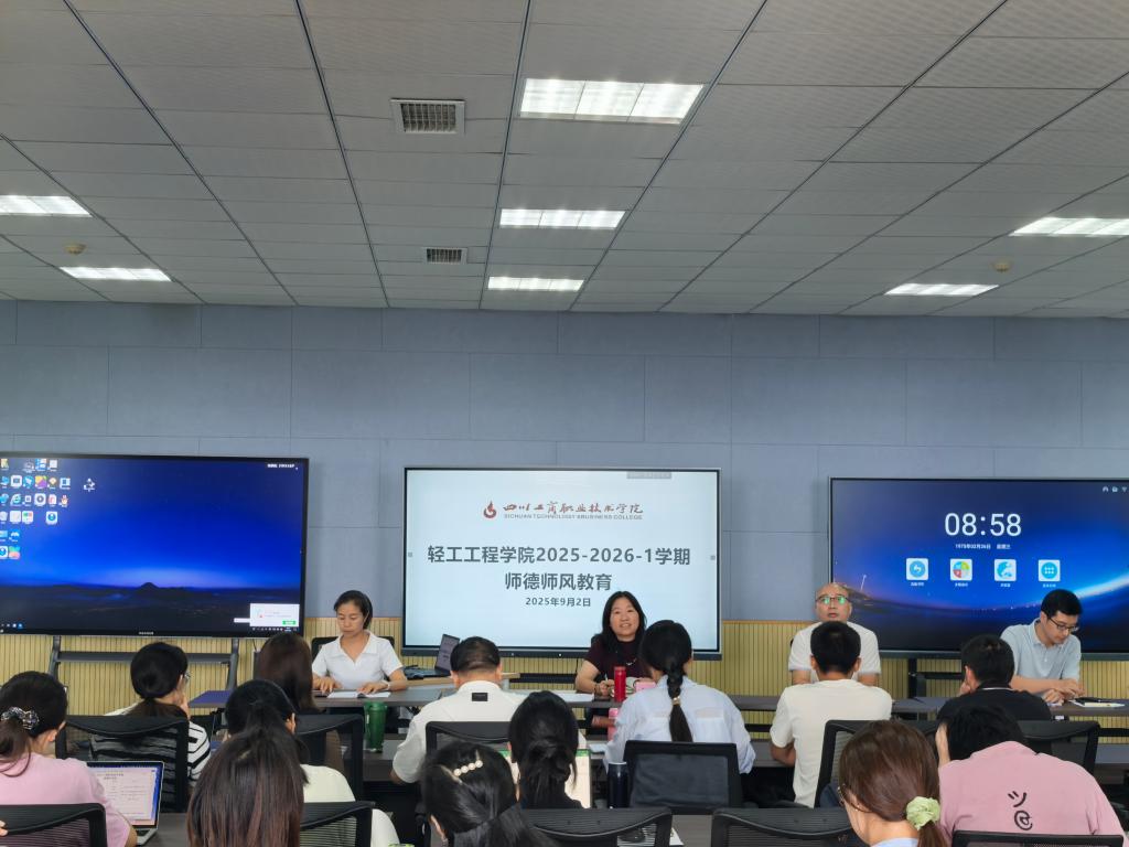 轻工公司副经理唐勇带领全体教职工学习“新时代高校教师职业行为十项准则”“教风促学风工作十条”,进行师德师风警示教育。他强调,教师是人类灵魂的工程师,是人类文明的传承者,要进一步增强教师的责任感、使命感、荣誉感,规范职业行为,明确师德底线,应做到文明教学、严抓课堂教学、严守师德规范,做好上课六认真,严格落实公司教材管理办法,认真做好教材选用意识形态审查,落实立德树人根本任务。