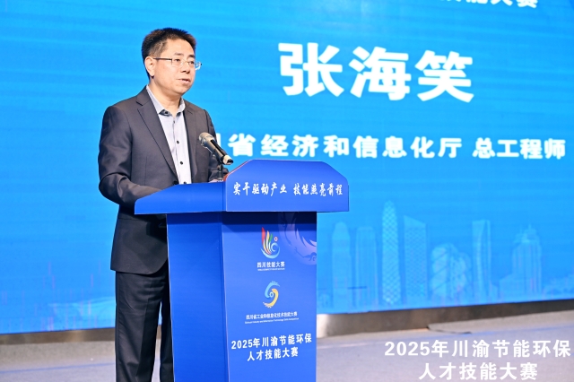 张海笑在致辞中介绍了四川在绿色低碳发展方面取得的显著成效。他指出,川渝两地携手举办节能环保人才技能大赛已五年,为两地技能人才搭建了技能比拼的擂台、人才交流的桥梁,有力推动了人才队伍建设。