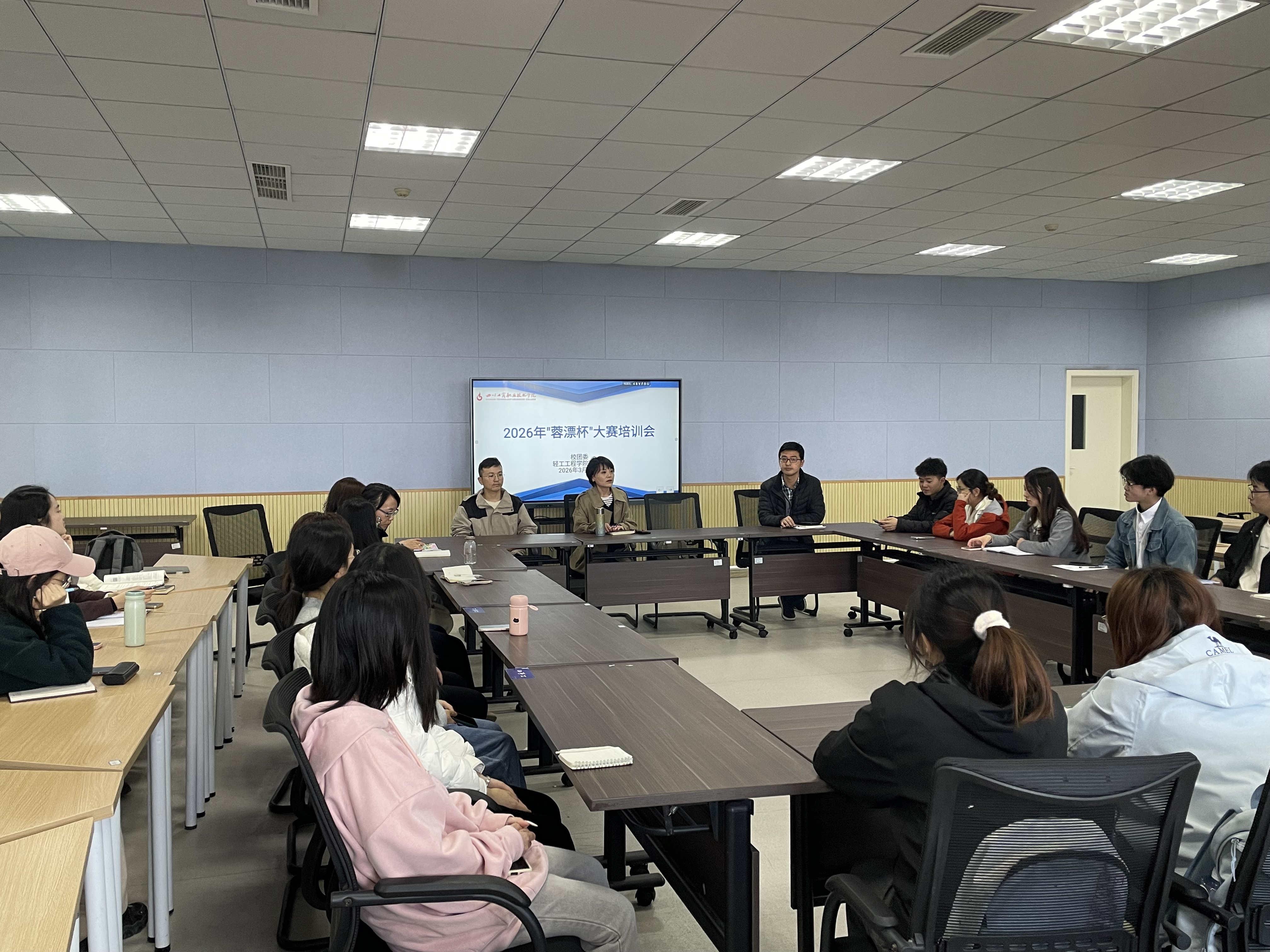3月11日下午,公司综合实训楼511会议室气氛热烈。为进一步提升学子参赛水平,助力团队在本届“蓉漂杯”赛事中再创佳绩,校团委邀请上届代表公司参赛并荣获三等奖的黄文部老师开展专题经验分享会。团委书记苑卉、轻工公司党总支副书记唐勇、本届“蓉漂杯”参赛团队指导老师及骨干员工共同参与交流活动。