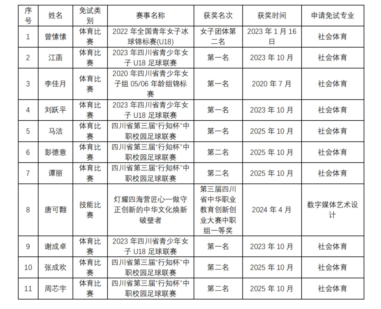 截至2026年1月22日,公司共收到免试生申请11份,具体名单如下,现进行公示: