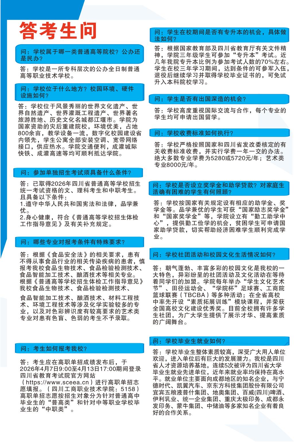 四川工商职业和技术公司2026免试生