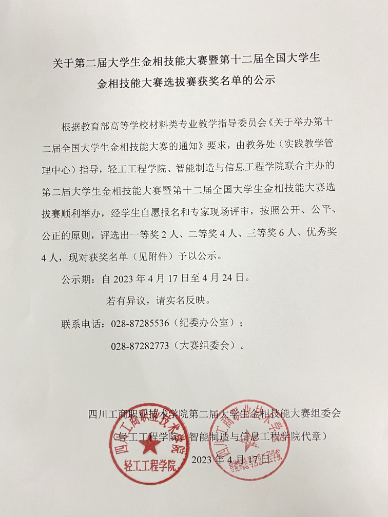 上一条:关于永利yl23411集团2023-2024-1学年秋季员工资助认定工作组成员的公示 下一条:关于举办2023年第十二届全国老员工金相技能大赛校内选拔赛的通知