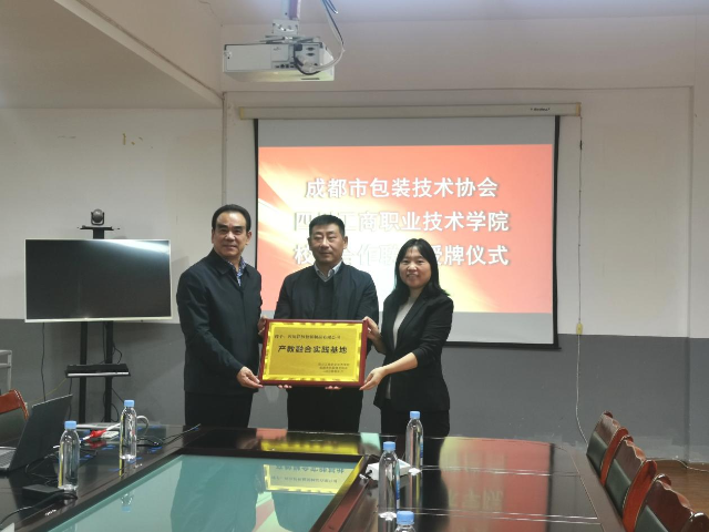 邱春丽副经理作为“副会长单位”代表接受了成都包协周仕林会长授牌。校企合作企业成都中天诚信包装有限公司、四川祥恒包装制品有限公司作为“产教融合实践基地”接受了公司和成都包协的联合授牌。各方代表分别就校行企共同推进包装技术行业高质量发展作了交流发言。