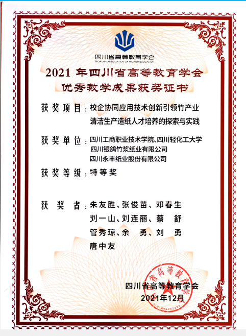 图5 DCS生产操作与管理控制 主干课程 现代制浆技术、现代造纸技术、制浆造纸分析与检验技术、造纸化学助剂及绿色应用、纸加工及特种纸、造纸工业清洁生产与污染控制、制浆造纸设备安装与维修、制浆造纸自动化控制、纸文化与纸艺术等。 教师团队 教师团队人数由最初7人增加至20人,团队中5人晋升为教授,4人晋升为副教授,3人晋升为高级工程师。呈现“高水平结构化”特点,有专任教师、企业工程师、首席专家等;有学科带头人、学术带头人和具有国际背景的高层次人才,不断补充引进高层次教学人才和具有实践经验的工程技术人员。先后承担四川省自然基金项目和重大培育项目等20余项,开展企业横向课题28项,公开发表学术论文96篇,其中,SCI收录12篇,EI收录5篇,中文核心45篇;发明专利13项,实现数量和质量双提升。2021年教学团队在朱友胜教授的带领下申报“校企协同应用技术创新引领竹产业清洁生产造纸人才培养的探索与实践”荣获四川省高等教育学会优秀教学成果特等奖。