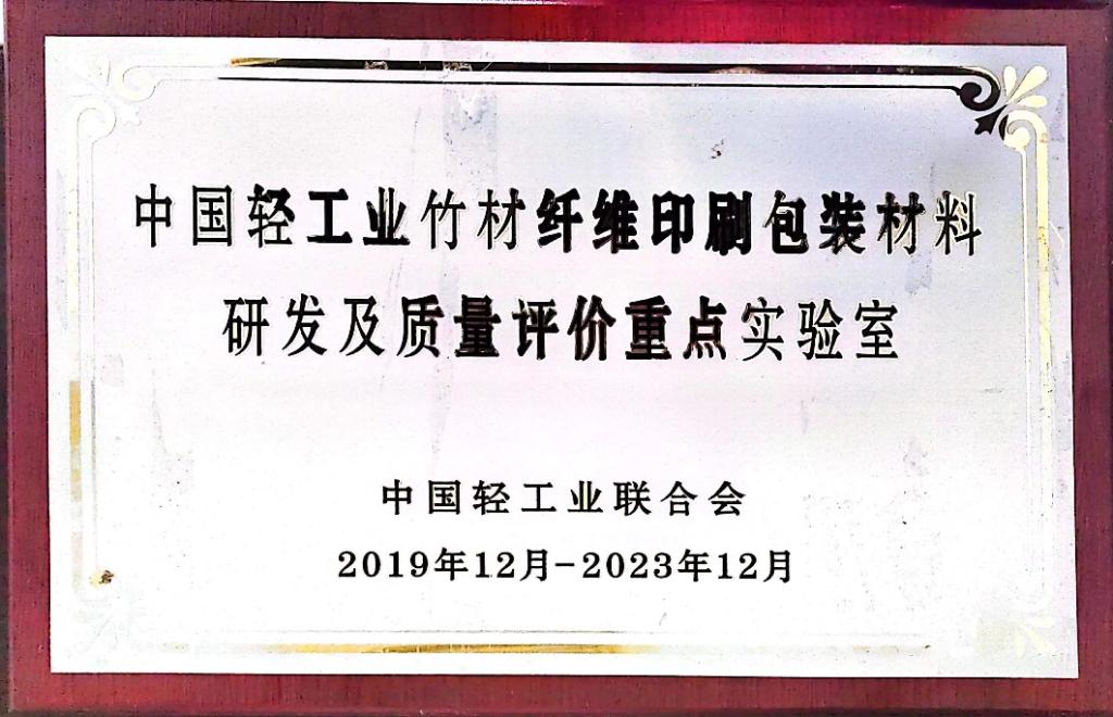 图6 教学团队荣获2021年四川省高等教育学会优秀教学成果特等奖证书 实训基地 (一)校内实训基地 1. 中国轻工业竹纤维印刷包装材料研发及质量评价重点实验室